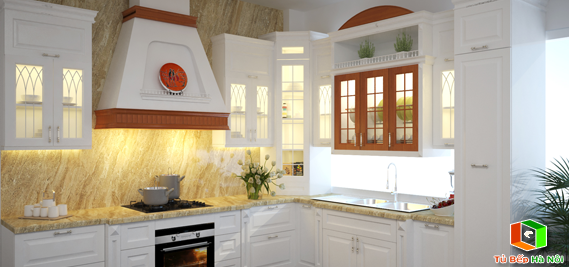Tủ bếp có màu trắng (kim) gần đây cũng khá được chuộng vì độ sạch sẽ và sáng sủa, dĩ nhiên là cần chú ý khả năng chịu nhiệt và tránh ố vàng do hơi dầu mỡ trong quá trình đun nấu.